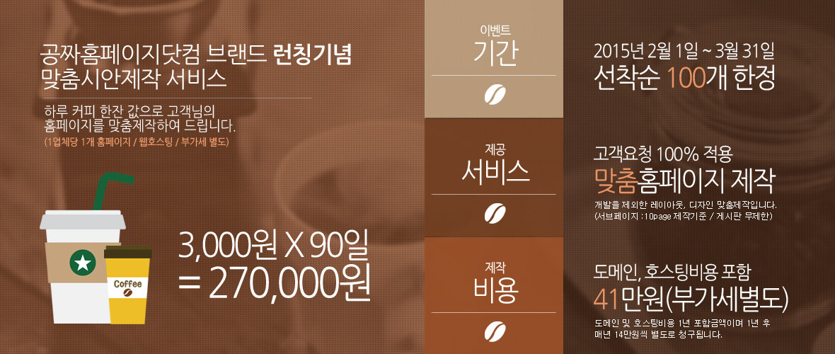 공짜홈페이지닷컴 브랜드 런칭기념으로 홈페이지 맞춤시안 제작 서비스 이벤트를 진행합니다.
